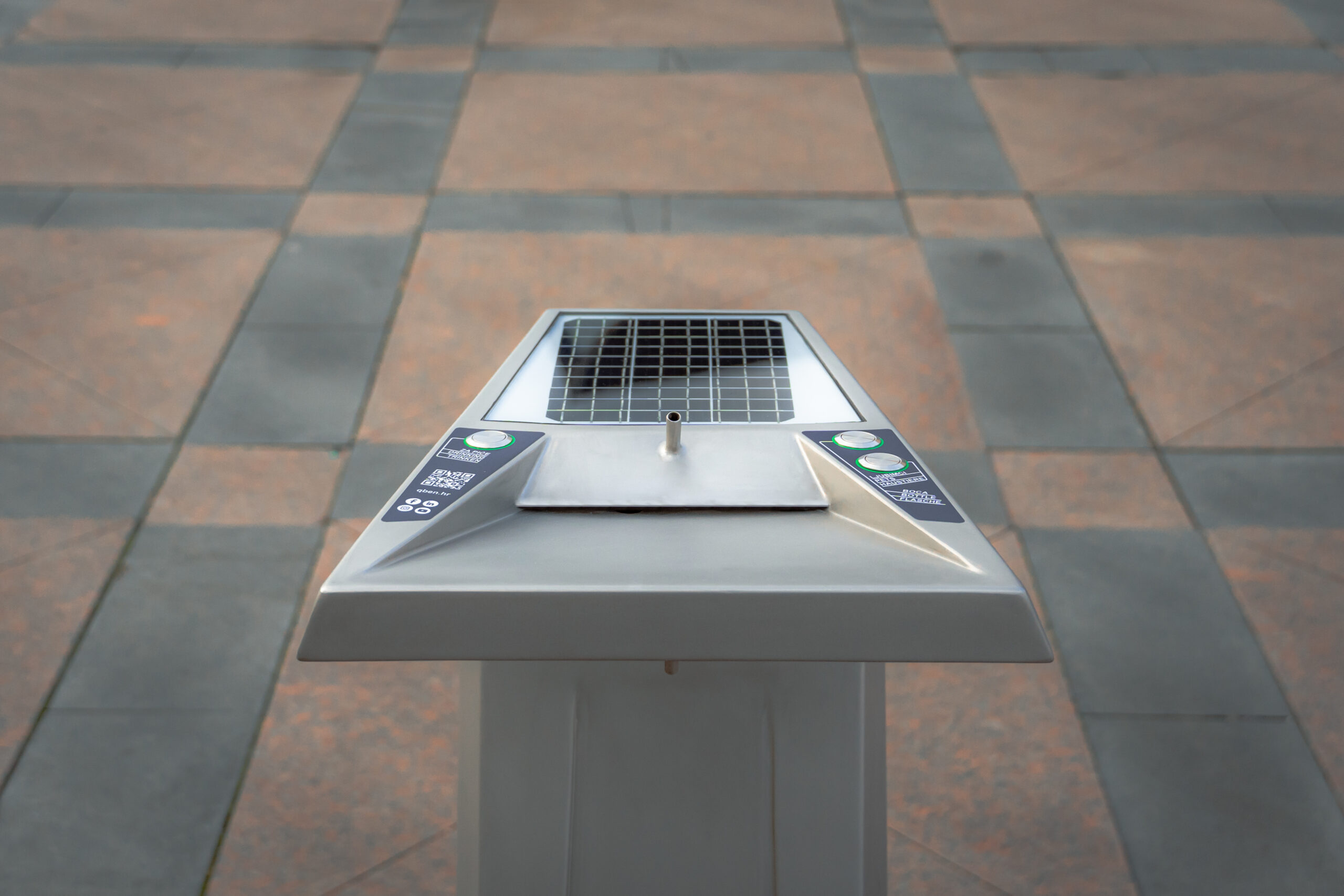 Ausgestattet mit einer Lithium-Ionen-Batterie, die über das eingebaute Mini-Solarpanel geladen wird, ist das System autark und benötigt keinen Stromanschluss. Die einstellbare Dauer des Wasserflusses sorgt für eine optimale Nutzung. Selbstverständlich ist ein Reinigungssystem integriert. Die Reinigungsintervalle können programmiert werden. Trinkwasser ist ein wertvolles Gut, weshalb QBen keinen Dauerdurchfluss vorgesehen hat. So wird sehr viel Trinkwasser eingespart und das Reinigungssystem sorgt für die entsprechende Hygiene.